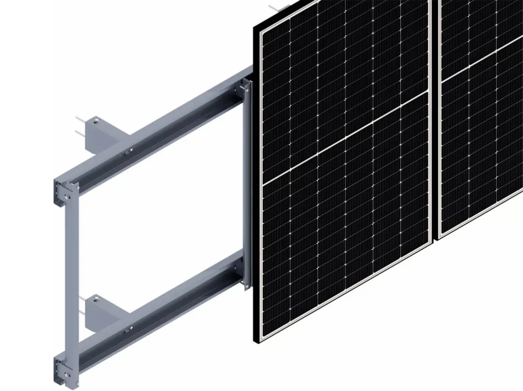 Inwazyjny system zbudowany z regulowanych konsol, które za pomocą odpowiedniej długości wkrętów są montowane do fasady i następnie, do których mocowane są profile na które zawieszone są moduły PV, wcześniej zaopatrzone w odpowiednie mocowania w formie kątowników.