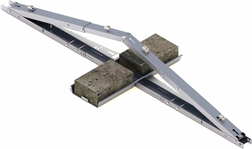 Podstawa konstrukcji jest stawiana na pokryciu dachu i następnie dodatkowo balastowana za pomocą bloczków betonowych stawianych na platformie balastowej