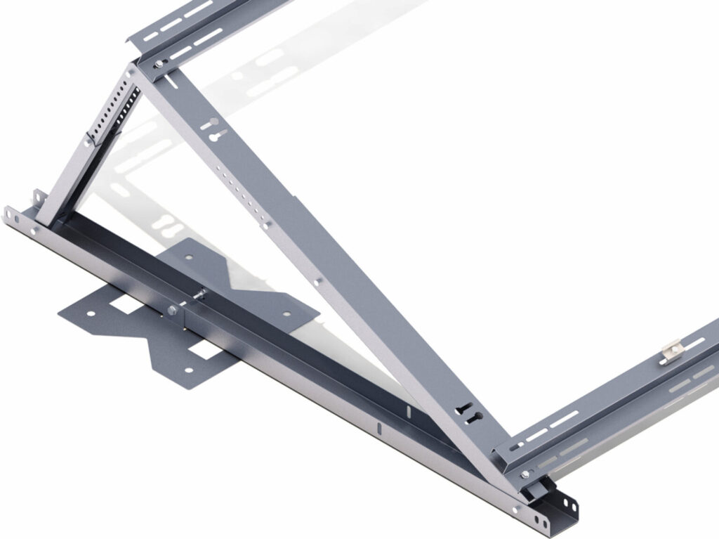 Konstrukcja wieloczęściowa, wykonana z blachy Magnelis™, przeznaczona na dachy płaskie, bez konieczności dodatkowego balastowania.