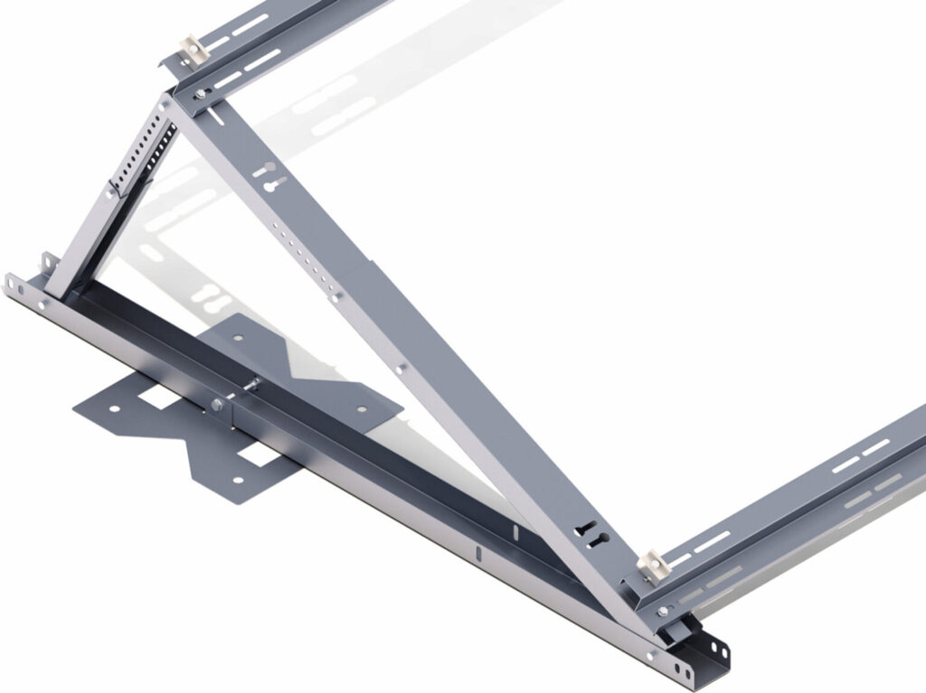 Konstrukcja wieloczęściowa, wykonana z blachy Magnelis™, przeznaczona na dachy płaskie, bez konieczności dodatkowego balastowania.